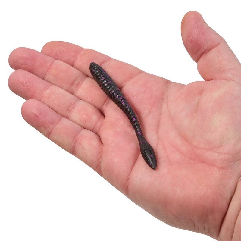 A great representation of nearly all baitfish, the Berkley Powerbait Maxscent Flat Worm is a deadly little appetizer that will have bass drooling to get a taste. Crafted with a flat bottom and a thinned out tail section, the Berkley Powerbait Maxscent Flat Worm glides to the bottom slightly nose first with its tail wagging to mimic the movements of a real baitfish. It is also infused with a heavy dose of Berkley’s proven Maxscent flavoring that catches up to 45% more fish than previous Powerbait formulas. Perfect for a drop shot or any other finesse technique, the Berkley Powerbait Maxscent Flat Worm should be apart of every angler’s arsenal.